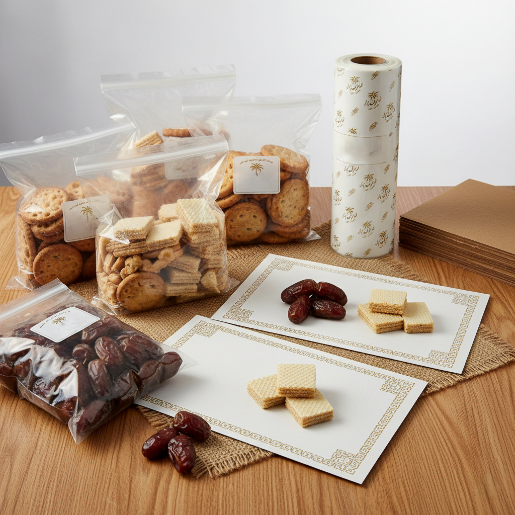 | کاربردها | بستهبندی خرما، بیسکوییت، ویفر، خشکبار، حبوبات و سایر محصولات غذایی |