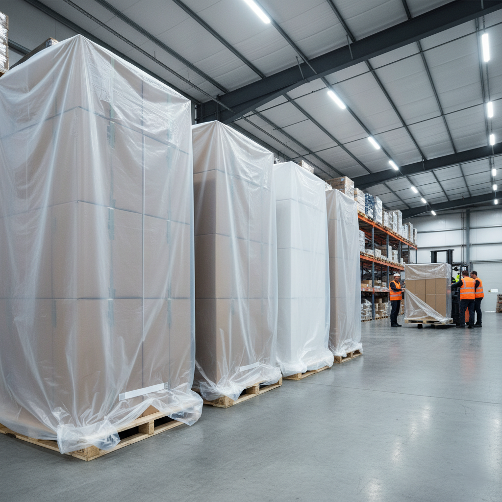 پوشش و بستهبندی پالتهای کالا در انبار یا فضای باز